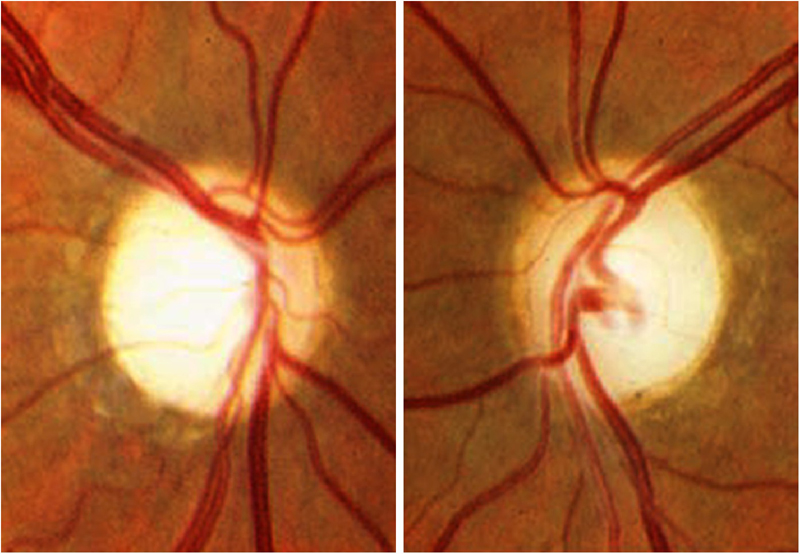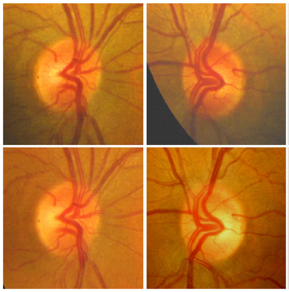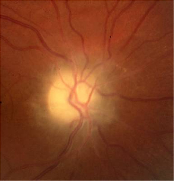 Este grupo de neuropatías producen una pérdida visual bilateral, simétrica, de inicio subagudo e indoloro. La discromatopsia es precoz y el defecto campimétrico suele ser central o centrocecal. Inicialmente, el fondo de ojo es normal, pero con el tiempo aparece palidez del disco óptico que predomina en el sector temporal del disco óptico (Figura 7). Para realizar un correcto diagnóstico, la historia clínica deber ser tomada de manera minuciosa, y centrada en los fármacos que toma el paciente y realizar una determinación de vitaminas (B1, B6, B12) y ácido fólico en sangre.