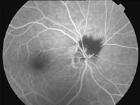 Figura 4. Angiografía que muestra la hipofluorescencia de la lesión.