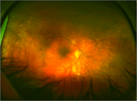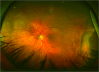 Figura 3. Retinografia Optomap® OI: desprendimiento coroideo seroso.
