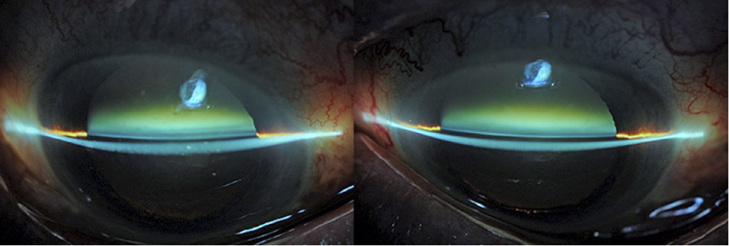 Figura 1. Fotografía de segmento anterior AO: estrechamiento camerular (midriasis farmacológica).