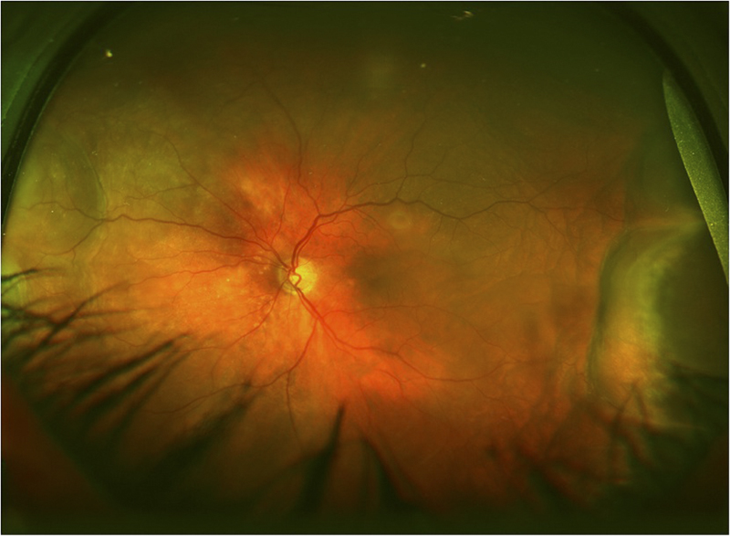 Figura 2. Retinografia Optomap® OD: pliegues y engrosamiento coroideo.