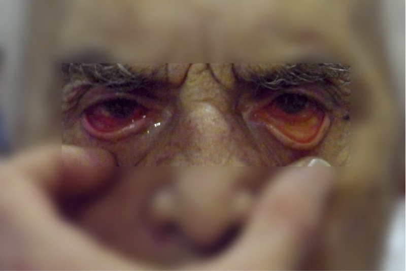 Hombre de 79 años, hipertenso, sin antecedentes oftalmológicos de interés, que acudió a urgencias por ojo rojo doloroso y disminución de agudeza visual (AV) bilateral de instauración progresiva en el transcurso de seis semanas, sin afectación del estado general ni otra sintomatología. Un mes antes había presentado un episodio autolimitado de monoartritis aséptica de rodilla derecha.En la exploración destacaba una AV corregida de 20/200 en el ojo derecho (OD) y 20/60 en el izquierdo (OS). Presentaba dolor a la motilidad ocular y restricción en todas las ducciones severa en OD y leve en OI. Exoftalmometría Hertel de 21 y 18 mm. Presentaba edema bipalpebral bilateral, quemosis severa con marcada tortuosidad vascular cubriendo parcialmente la cornea en OD, cámara anterior Van Herick grado IV, y catarata nuclear. Presión intraocular (PIO) de 30 y 32 mmHg, ángulo abierto, y papilas con relación copa/disco de 0’7 en ambos ojos (AO), con adelgazamiento concéntrico del anillo neurorretiniano en OD e inferior en OS, siendo el resto de la exploración funduscópica normal. Se instauró tratamiento hipotensor con timolol y brimonidina tópicos, y con acetazolamida oral a dosis de 250 mg cada 8 horas. La analítica únicamente mostró discreta leucocitosis con neutrofilia y leve elevación de enzimas hepáticas, con eritrosedimentación y proteína C reactiva dentro de valores normales.