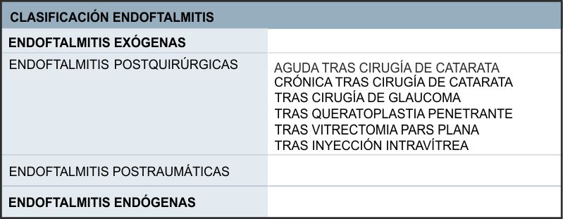 Hay varios tipos de endoftalmitis que hay que conocer para hacer el diagnostico diferencial: