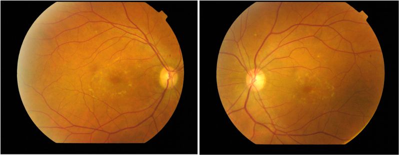 Una mujer de 35 años sin antecedentes médicos, familiares ni oftalmológicos de interés, consultó por disminución visual bilateral tras iniciar una terapia con isotretinoína oral (Roacutan®) indicado para el tratamiento del acné.La agudeza visual con corrección óptica era de 0,15 en el ojo derecho y 0,50 en el ojo izquierdo. El segmento anterior y la presión intraocular no mostraban alteraciones significativas. El fondo de ojo destacaba la presencia de manchas amarillentas maculares en ambos ojos (Figura 1).
